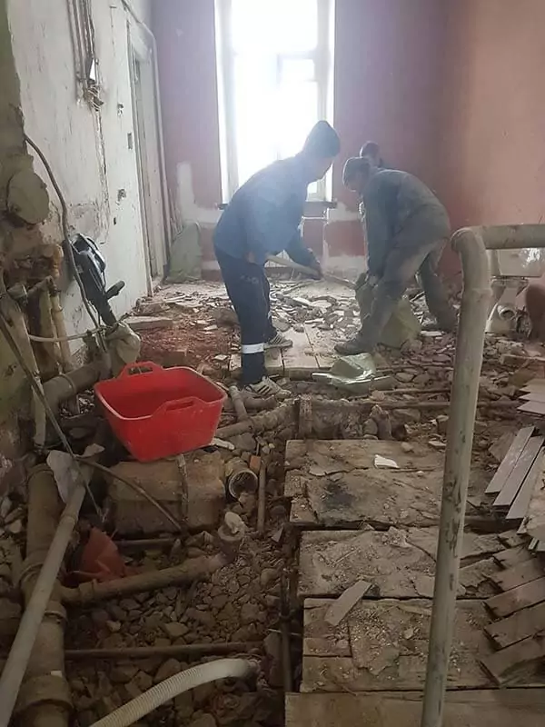 зачастую работают без инструментов и тем самым при демонтаже могут навредить несущим конструкциям. Срывают трубы и могут затопить соседей.